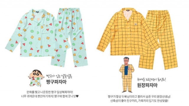 국내 SPA브랜드 '스파오'가 선보인 '짱구' 파자마도 같다. 작품 속 '짱구'가 입던 파자마나, 유치원 원장님이 입던 노란 줄무늬 옷을 재현했다.