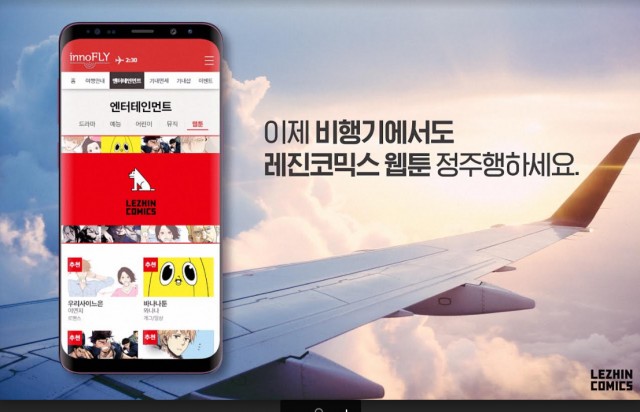 이노플라이 이상혁 대표는 “서비스 초기지만 편당 탑승객의 평균 30% 정도가 이용할 정도로 좋은 반응을 얻고 있다”라며 “웹툰에 대한 관심과 수요가 커진 가운데 레진코믹스 웹툰을 비행기 안에서도 볼 수 있는 환경을 제공하게 돼 기내 디지털 서비스가 더욱 탄력을 받을 것으로 기대한다”라고 말했다.