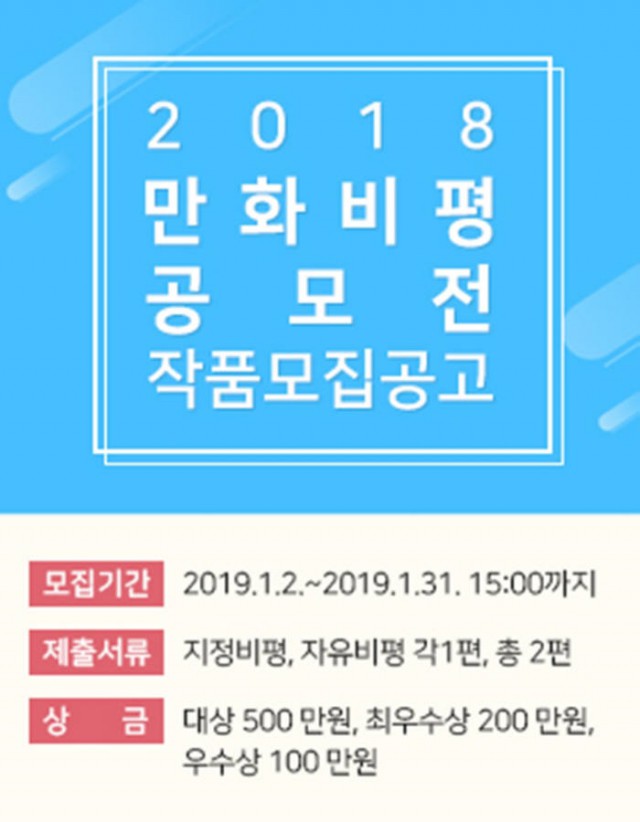한국콘텐츠진흥원이 2일부터 오는 31일까지 '2018년 만화비평 공모전'을 진행한다.