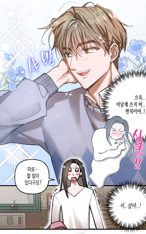 A. 저 역시도 웹툰 작업은 처음이었는데요. 처음이 없는 프로는 없다고 생각해요. 촉박한 일정 속에서 책임감 있게 끝까지 작업해주셔서 감사하다는 말씀드리고 싶어요. 그리고 충돌이라고 할 것도 없는 게 저희 담당 PD님이신 지선 PD님께서 중간에서 잘 소통하고 조율해 주셨거든요. 만약 나킨 작가님께서 소화하실 수 있는 일정이 충분히 주어졌다면 '작가님, PD님, 저까지 서로 많이 의견도 교환하면서 재밌게 작업할 수 있지 않았을까' 하는 아쉬움은 듭니다. 나킨 작가님과 직접 이야기를 주고 받으며 "작가님, 이 부분 더 적극적으로 진행해주셔도 돼요. 과감하게 제 의견 버리고 작가님 의도대로 하셔도 됩니다!"라고 뭔가 이런 커뮤니케이션이 이루어져 재밌는 장면이 탄생했을 것 같아요.