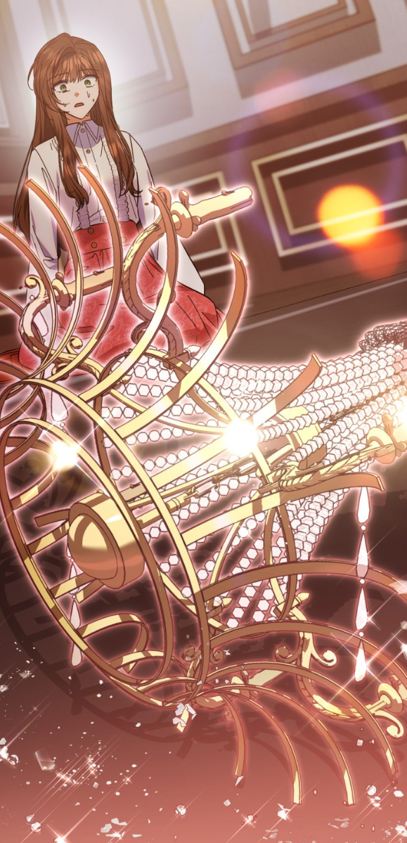 남자는 바닥에 떨어진 거대한 샹들리에를