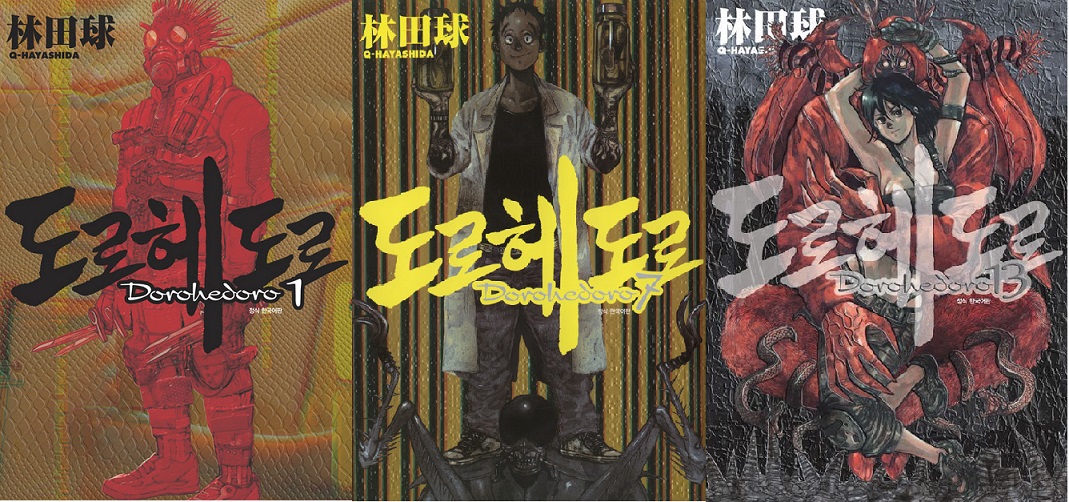 인체가 마구 잘려나가고 내장이 배 밖으로 늘어지는 격렬한 폭력 묘사에 개그를 뒤섞고 평범한 일상생활을 끼어 넣는 방식은 ‘익숙함’과 ‘낯섦’ 사이를 무한정 맴도는 기묘함을 자아낸다. 이는 섬세한 배경, 탁월한 인체 묘사로 연신 감탄사를 내뱉게 만드는 하야시다 큐의 독특한 화풍으로 인해 더욱 극대화된다. 갖가지 이형의 상식과 도구를 연필 스케치까지 고스란히 드러내는 거칠고도 세밀한 작화로 이식해낸 <도로헤도로>는 죽음조차 우습게 치장하는 이세계를 훌륭하게, 어디로 튈지 모르는 럭비공처럼 그려내고 있다. 잔인무도한 폭력과 황당한 개그를 병치시키는 ‘작은 블랙 코미디’에서 시작해 계급사회를 은유하고 전복하려는 ‘큰 블랙 코미디’로 나아가는 기나긴 여정. <도로헤도로>는 가히 블랙 판타지의 정수요, 수작 중의 수작이다.