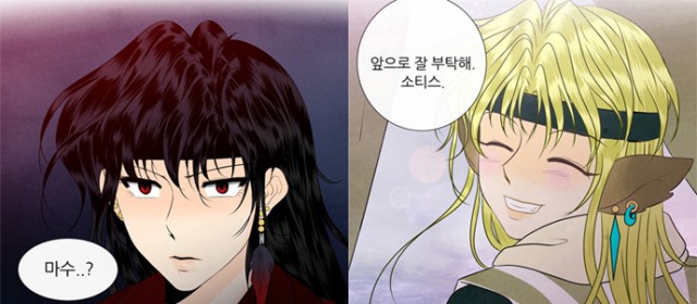 필자가 판타지 장르의 웹툰을 리뷰할 때면 언제나 그랬듯 내용 소개는 최대한 짧고 간단하게. 제목의 '아아루'는 행성의 이름입니다. 주인공 소티스는 왕녀이고, 그녀에게는 쌍둥이 언니 '이시스'가 있습니다. 쌍둥이 언니인 이시스는 나중에 왕으로 즉위하는데, 이 과정에서 다른 누군가에게 공격을 당하게 되고, 주인공은 잘 짜여진 계획에 의해 누명을 쓰고 죽임을 당할 위기에 처합니다. 소티스는 주변의 도움을 받아 간신히 추격을 뿌리치지만, 왕녀의 신분도 잃고 사막 한가운데에 추락하게 되지요. 모험의 시작입니다.