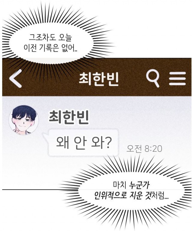 이렇게 웹툰은 낯설고 새로운 상황에서 아무것도 모른 채 계속된 혼란 속에 빠져 어떻게든 기억을 찾아보려 허우적거리는 주인공 지은이 뜻밖의 사실을 알아내는 것으로 진행됩니다. 그것은 바로-