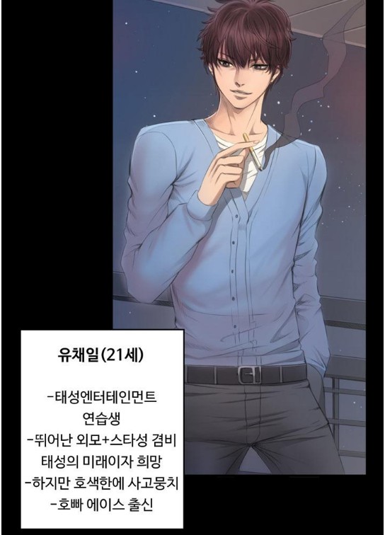 '유채일'은 호빠 에이스 출신이라는 타이틀에, 있는 놈이 더 한다고 여자를 엄청 밝힌다. 귀신도 홀려버릴듯한 잘생긴 외모로 주변에 여자들, 연습생들까지 꼬셔 마치 발정난 짐승처럼 이리저리 관계를 맺고 다니는 난봉꾼이다. 심지어는 태성의 회사 동료와도 관계를 했다(...). 작화가 너무 좋아서 그런지 남자인 필자 또한 이 캐릭터의 얼굴을 보면 두근거릴 때가 있다. 다소 양아치 기질이 다분한 캐릭터이지만 스타성만큼은 동료 연습생 그 누구보다도 뛰어나고, 능글맞은 성격이기에 굉장히 매력이 있다고 생각한다.