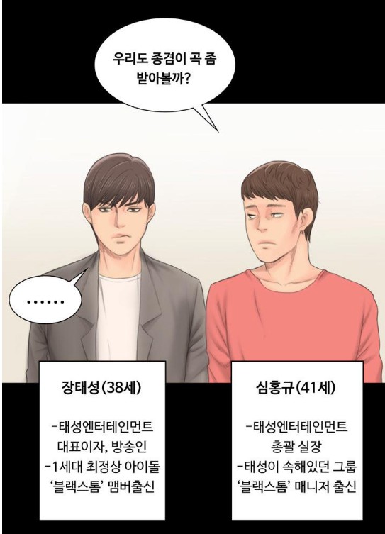 본 작품의 주인공이자, 1세대 최정상 아이돌 '블랙스톰'의 멤버 출신인 장태성은 종겸의 표절 사건 이후, 회사를 나와 독립된 회사를 차렸지만 종겸의 압박으로 인해 회사 사정이 넉넉치 않은 편이다. 불같은 성격과 자존심 또한 한 몫하는 편이라 날이 갈수록 회사는 힘들어져만 간다. 엎친 데 엎친 격으로 회사에서 유일하게 스타성을 가지고 있는 기대주인 - (아래)
