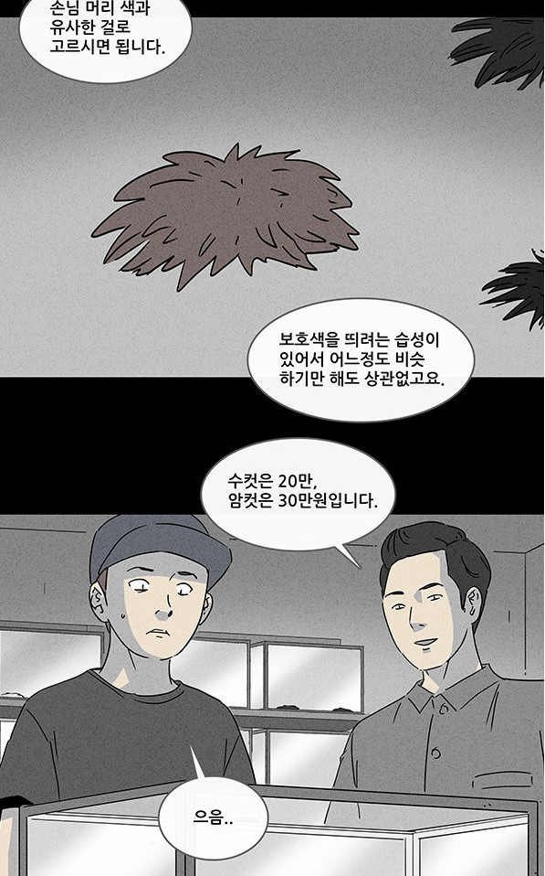 애완견처럼 가발을 키우고 길들여 자신의 머리로 사용하는 ‘애완 가발’. 머리카락에 암수가 나뉘어 있는 것도 재미있는 발상인데 와중에 암컷이 더 비싸다.