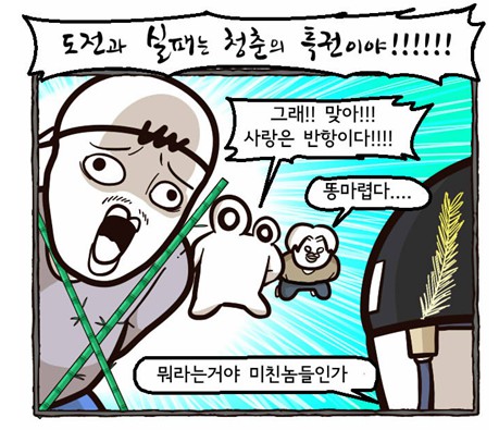 이 웹툰을 보며 독자들이 가장 많이 하는 말은 “아… 이 또xx들…”, “아… 얘네 완전 병x이네ㅋㅋ”라며 그들의 특유한 병맛에 사로잡히게 된다. 동시에 이들의 모습이 청춘과 낭만을 그 나이에 맞게 즐기는 것 같아서 씁쓸하게도 조금은 이들을 부러워하는 마음이 들게 된다. 오늘날 우리는 현실의 벽에 갇혀 젊음에 대한 낭만을 잊어버리고 산 것은 아닐까….