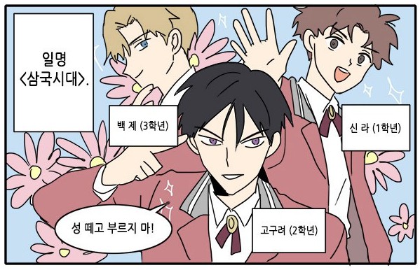 전학을 가게 되면서 그 이야기가 전개된다. 그 학교에는 ‘삼국시대’라는 꽃보다 미남 F4느낌의 ‘백제’, ‘고구려’, ‘신라’가