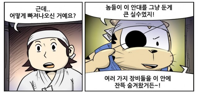 마지막 6부는 조선으로 돌아온 ‘호랭총각’이 어사로 임명되면서 벌어지는 '옴니버스 형식'의 이야기이다. <호랭총각>은 1~6부 각 부별로 내용이 끊어지지 않고, 쭉 이어지기 때문에 더욱 흥미진진했다. 웹툰을 정주행을 했던 나로서는 다음에 이어질 이야기가 너무 궁금해져 폰을 놓치 못한 채 계속해서 읽었던 기억이 있다.