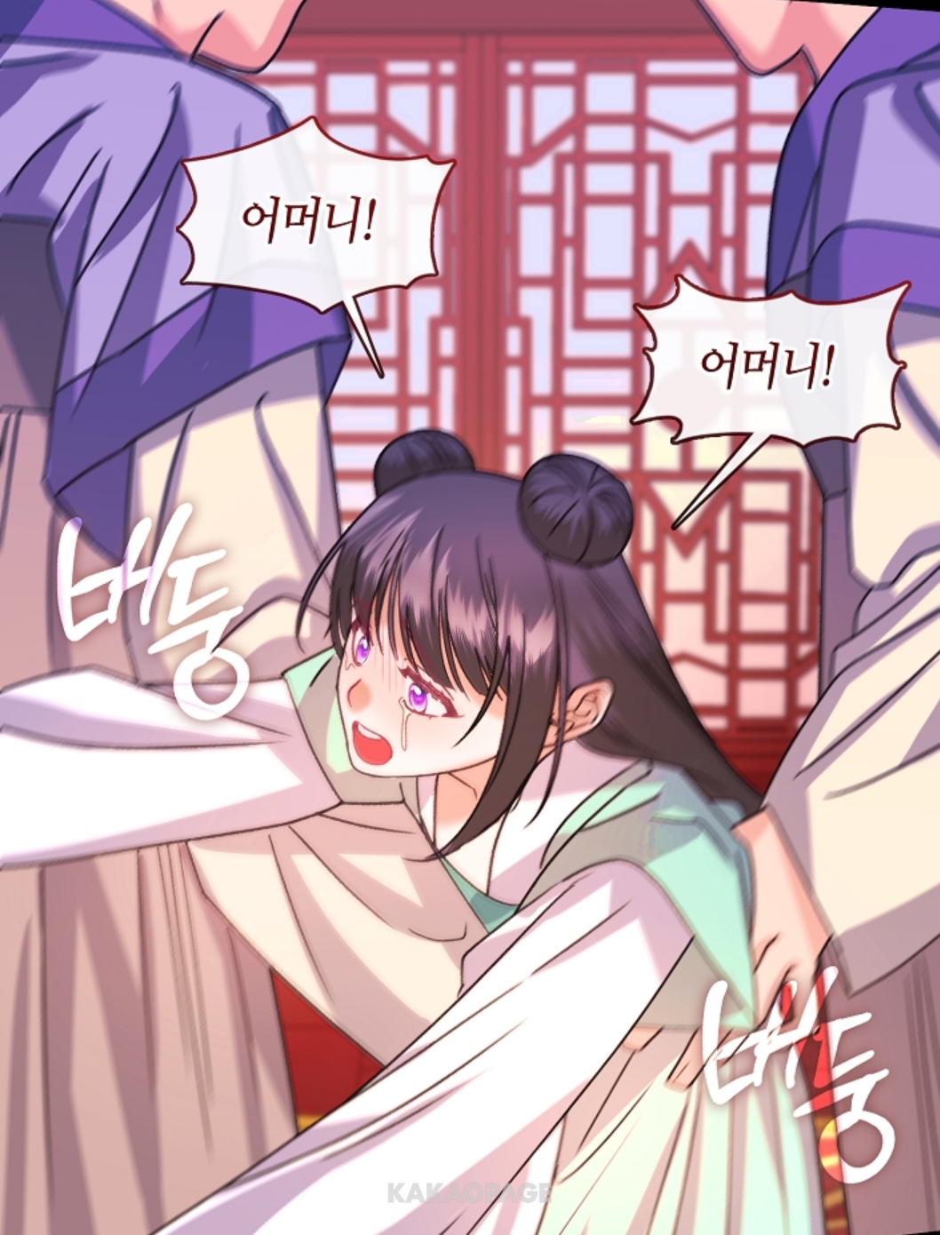 어린 여주의 얼굴은 형체도 없이 무너져 내렸습니다.