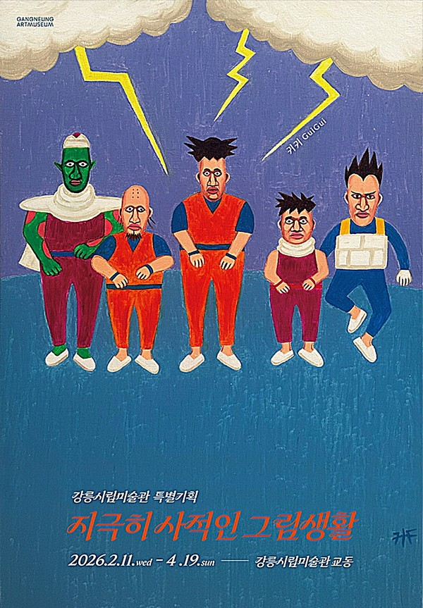 강릉시립미술관은 웹툰 작가 귀귀의 독창적인 예술 세계를 조명하는 특별기획 전시 ‘지극히 사적인 그림생활’을 오는 11일부터 4월 19일까지 개최한다. 이번 전시는 디지털 환경에서 탄생한 웹툰의 해학과 서사를 유화 등 회화의 형태로 재해석하여 디지털 드로잉과 순수 회화 사이의 경계를 탐구하는 시도를 보여준다.