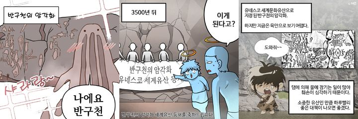 15명의 교육생과 멘토가 참여해 반구천 암각화를 주제로 한 4컷 만화 5편과 한 컷 툰 15점을 완성했다. 울산웹툰캠퍼스 공식 인스타그램을 통해 공개했다.