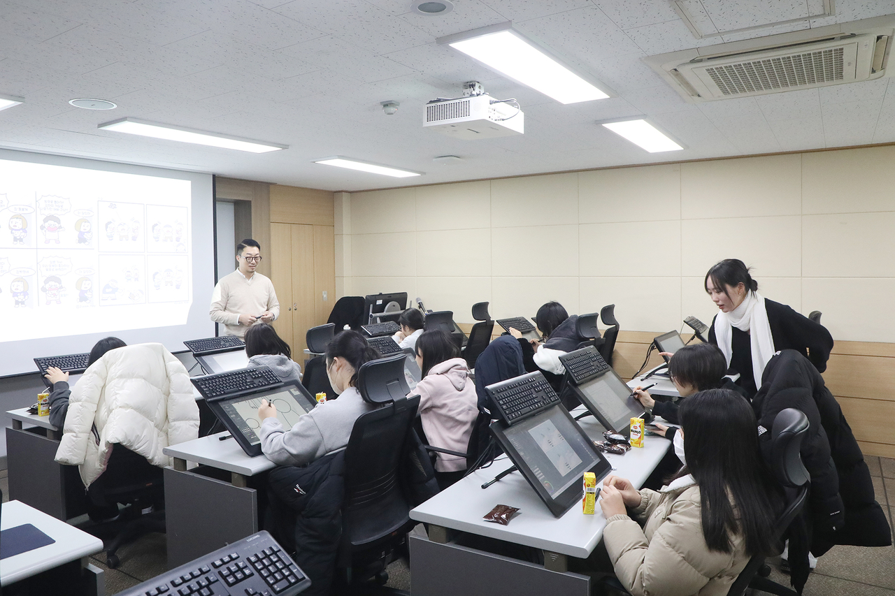 기초 과정에서는 디지털 드로잉의 기본기와 4컷 웹툰 제작을 배우고 미디어 윤리 교육을 병행했으며, 심화 과정에서는 연출 이론과 3D 에셋 활용 등 전문 기술을 익혀 단편 에피소드를 완성했다. 영남이공대 웹툰과 교수진이 직접 지도에 나서 교육의 전문성을 높였고, 학생들이 실제 제작 환경을 경험하며 창작 역량을 키우는 데 집중했다.