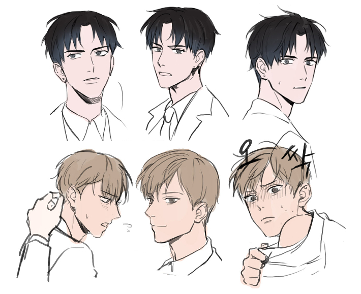 A. BL은 아무래도 어딜 가나 탄탄한 코어층이 있어서 그림을 그리다 보니 자연스레 좋아하고 그리게 됐어요. 그래서 자연스럽게 '만화를 그리면 무조건 BL이다~'했구요. 처음 봤던 BL은 어떤 소년 만화의 팬아트였는데요, 남자끼리 키스를 하고 있어서 깜짝 놀라 컴퓨터를 강제 종료했습니다. 초등학생이었던지라 너무 어린 나이였기에 그 첫인상이 매우 강렬하게 남아있어요. 그때는 그냥 '이런 커플도 있나 보다~' 했습니다. ㅋㅋ