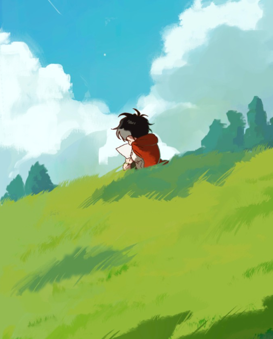 그제야 마음이 편해진 아이는 언덕에 발라당 누워