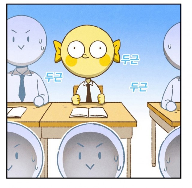 내용 자체는 그리 특이할 게 없습니다. '개그' 장르와 '옴니버스' 형태의 기본에 충실한 작품이거든요. 소소한 웃음을 자아내는 개그가 쉼없이 이어지고, 물고기의 탈을 쓴 학생들은 적당히 현실적이면서 적당히 만화적입니다. 필자는 이미 10대의 감성과 기억에서 한참 멀어진 상태인데, 그럼에도 오그라들거나 이해불가에 이르지 않고 꽤나 많이 웃을 수 있었습니다. 한 가지 아쉬운 건 독자의 머릿속에 오랫동안 머무르게 되는 그런 인물이 부족하다는 점인데... 이 부분은 현직 학생인 독자들이 보면 또 다를 수도 있을 것 같군요.