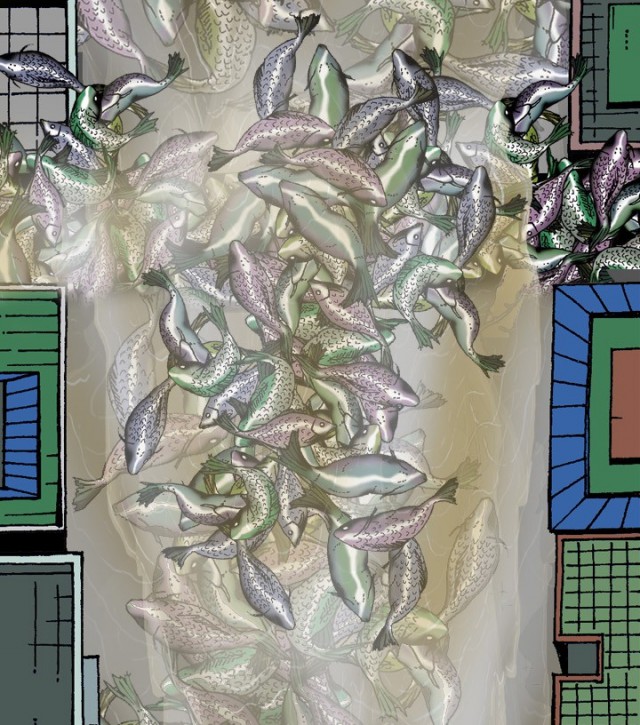 1부는 말하자면 '물고기가 거대화 되어 인류를 위협한다'는 아이디어를 구체화시켜 스케치했다는 느낌을 인상을 받았습니다. 분량도 그리 많지 않고 스토리 진행도 떡밥을 잔뜩 살포했을 뿐 제대로 밝혀진 건 없었거든요. 시즌2에 와서도 한동안은 밝혀지지 않는 의문과 비밀이 늘어나고 독자들의 궁금증이 증폭됐을 뿐이지만 최근 연재 분량을 보면 스토리가 꽤 많이 진행된 편입니다.