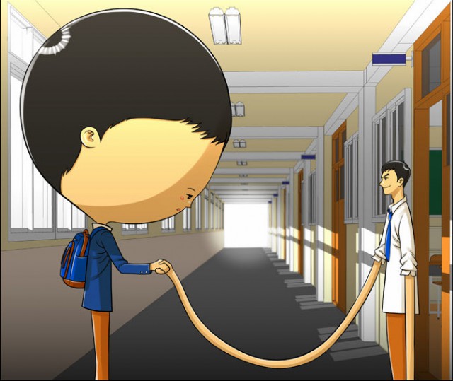 전학을 간 첫날, 자신을 보고도 놀라지 않는 소년을 만나는 주인공. 자신의 커다란 머리를 보고서도 아무렇지도 않게 인사를 하며 악수를 청하는 소년을 보자 주인공은 무척이나 놀란다. 그런데 뭔가 이상하다. 소년의 팔이.. 무척이나 길었다. 정말 길었다. 마치 고무줄처럼.. 다양한 개성을 가진 친구들이 모여있다는 얘기는 들었지만 실제로 보니 상상 그 이상이었던 것이다.