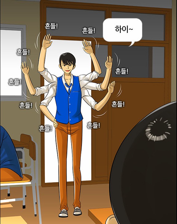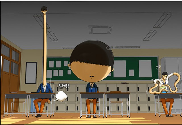 오징어마냥 팔이 흐물흐물하고, 무척 긴 그를 보며 주인공은 매우 놀란다. 자신 이외에 평범하지 않은 사람을 보니 무척이나 당황하여 패닉이 되어버린 것. 이때까지 자신만이 비정상이라고 생각해왔는데 오히려 직접 마주하니 면역이 없는 것이다. 그렇게 다른 반 아이들을 기다리고 있었는데.. 직접 마주하니 상상을 초월하는 건 이 뿐 만이 아니었다.