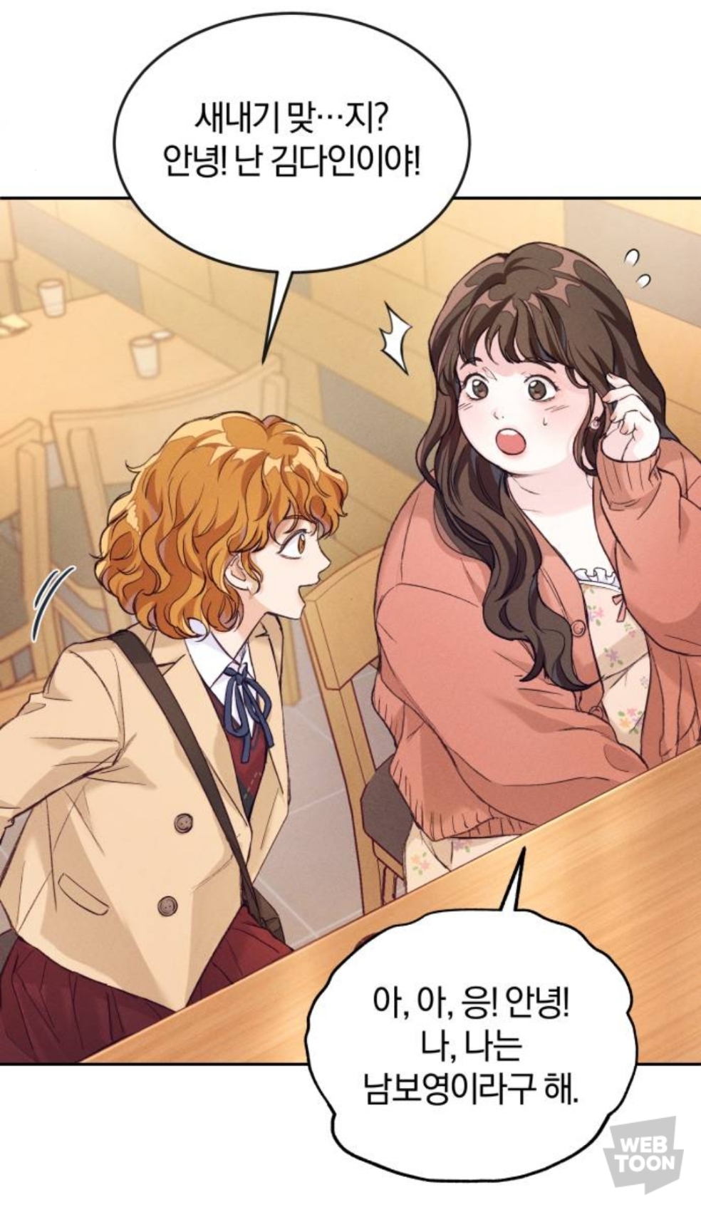 다인은 과 동기들이 모여 있는 식당에 들어섰습니다.