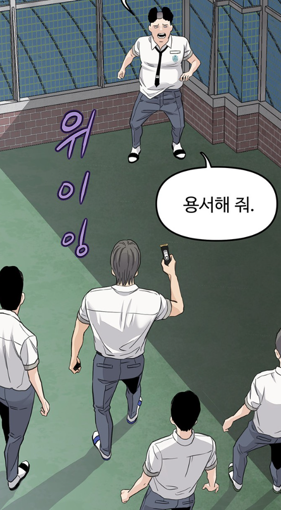 머리 한가운데 고속도로가 난 상태로 용서를 구하지만